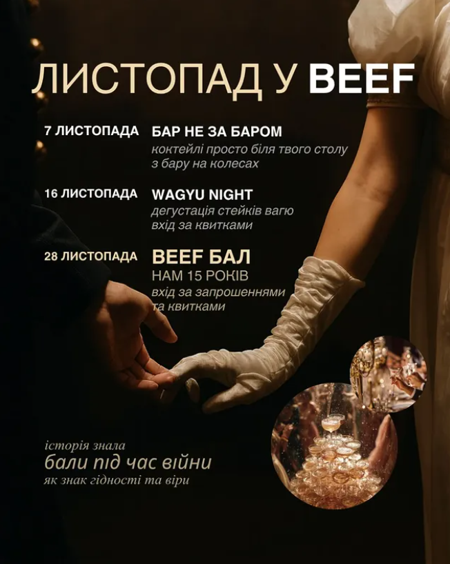 Ноябрь у BEEF торжественный, глубокий, с ароматом шампанского и зрелых эмоций.