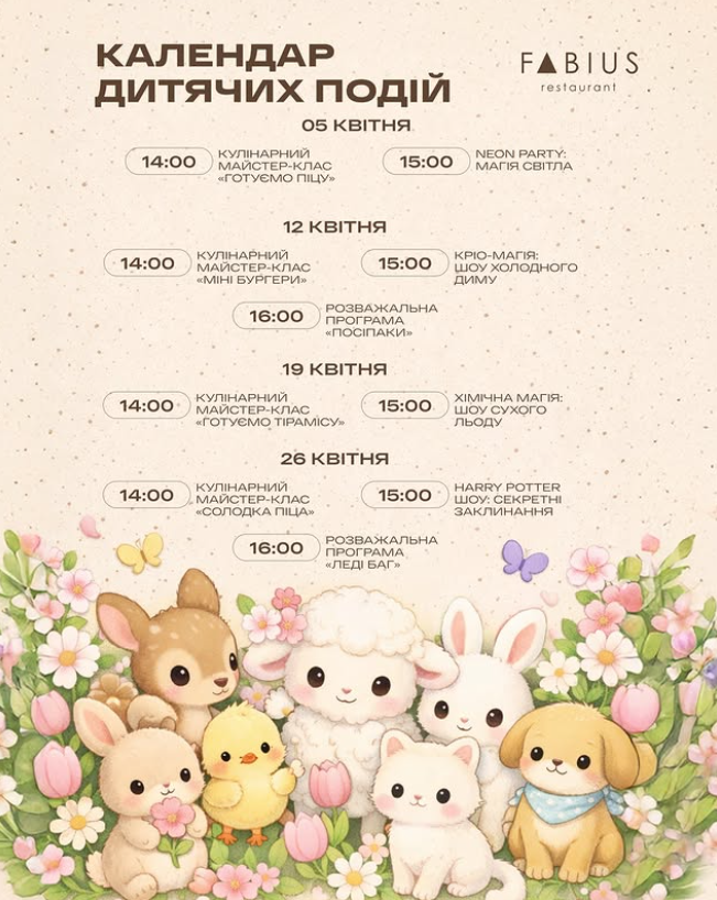 Малышей ждут увлекательные анимационные программы с любимыми героями, кулинарные мастер-классы, где каждый сможет почувствовать себя настоящим шеф-поваром и яркие шоу.