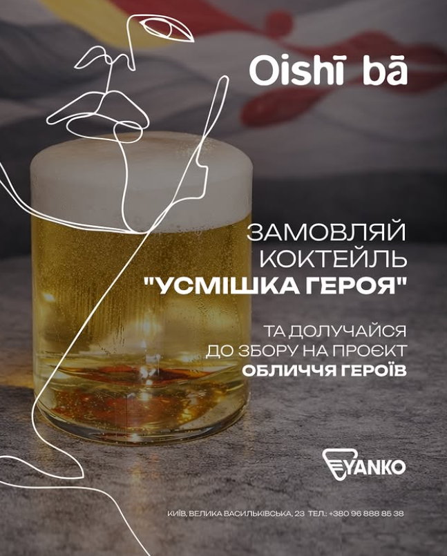 Заказывай благотворительный коктейль «Улыбка героя» до 3 февраля в Oishi Ba и приобщайся к сбору донатов для проекта «Лицо героев» от Ukrainian Fashion Week — реконструкция лиц в результате минно-взрывных травм.