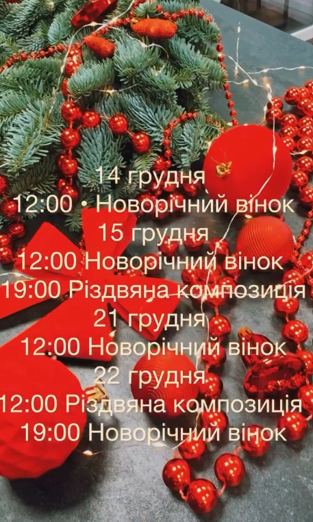 На мастер-классе вы создадите: элегантный рождественский венок из живой хвои и натурального декора, зимнюю композицию в современном стиле, праздничные акценты из ягод и новогодних украшений.