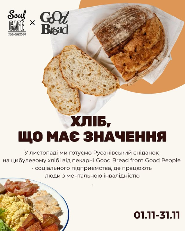 В этом месяце наш Русановский завтрак – с Луковым хлебом от пекарни Good Bread from Good People @from_good_people – социального предприятия, где работают люди с ментальной инвалидностью.