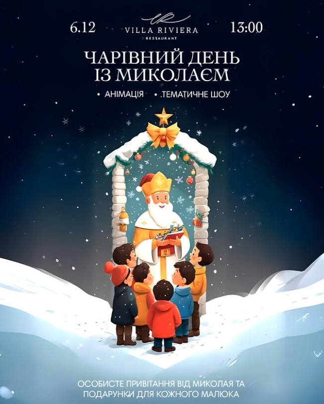 6 декабря в 13:00 в Villa Riviera малышей ждет настоящая зимняя сказка.