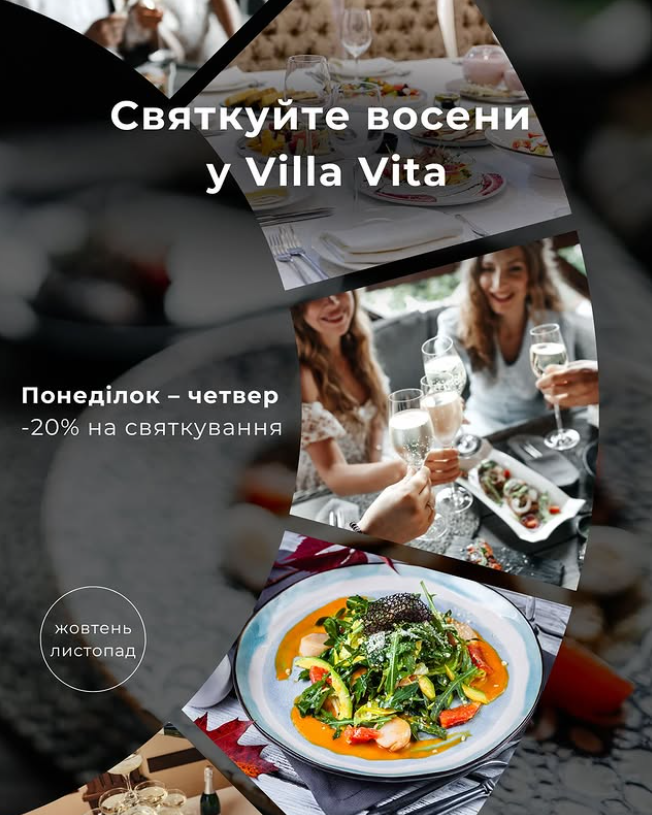 С понедельника по четверг весь октябрь и ноябрь -20% на празднование (при заказе от 2500 грн на человека)