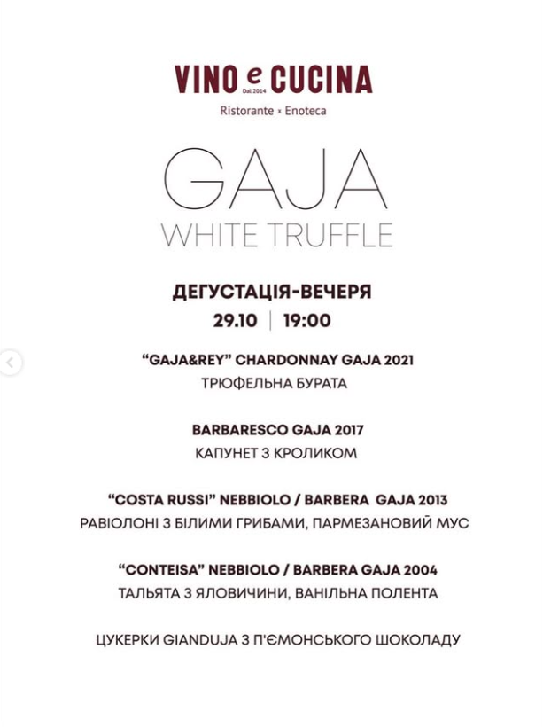 Белый трюфель в сочетании с винтажами Gaja – опыт, который стоит вашего внимания.