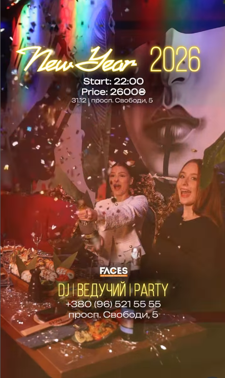 Львов / Календарь событий / Ресторан Faces / События / Ваш новый год с друзьями в FACES.