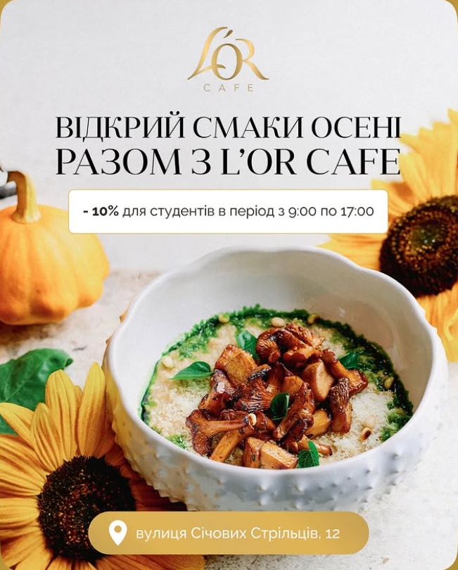 Львов / Календарь акций / Ресторан L’OR Cafe & Boutique / Акции / Открой вкусы осени ВМЕСТЕ С L’OR Cafe.