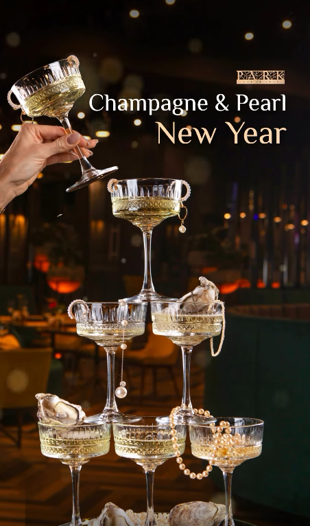 31.12 - Champagne & Pearl Night/ Башня с игристым и устрицами для всех гостей, музыка и атмосфера праздника.