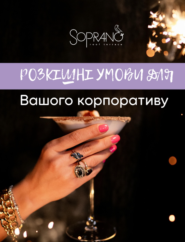 Львов / Календарь акций / Ресторан Soprano.Roof terrace (Сопрано) / Акции / Роскошные условия для Вашего корпоратива.