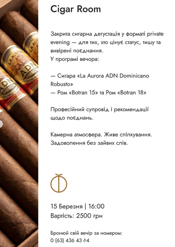 ТОЙ приглашает на дымящийся вечер — за бокалом, в приятной компании и частной атмосфере.