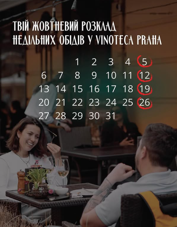 Каждое воскресенье в 15:00 вас ждет особое блюдо от команды — большая порция уюта, вкуса и душевных разговоров с друзьями. Октябрьское расписание: