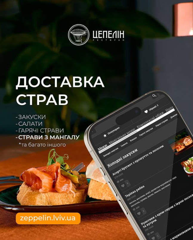 Выбирайте блюда на сайте ресторана Цепелин и в течение одного часа мы доставим ваш заказ горячим, да еще с дымком.