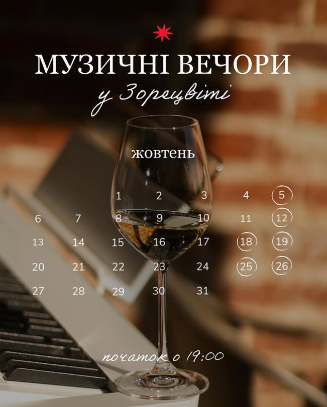 Львов / Календарь событий / Ресторан ZORETSVІT / События / Музыкальный календарь октября в Зорецвите.