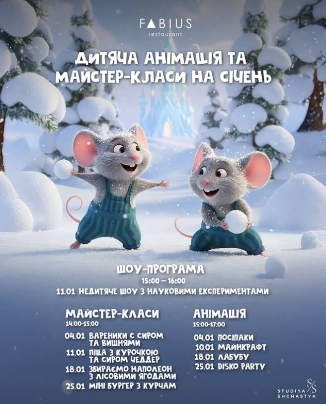 У січні у Fabius на маленьких гостей чекають яскраві вихідні з анімацією, шоу та кулінарними майстер-класами.
