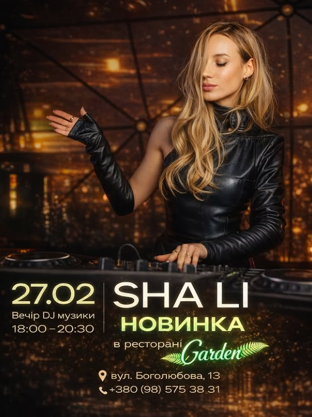НОВИНКА в ресторані Garden — DJ сет від SHA LI .
