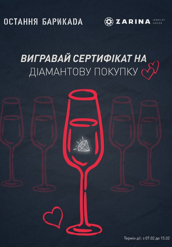 Арт-гастрономічний простір «Остання Барикада» та Ювелірний Дім ZARINA @zarina.ua об’єдналися, щоб зробити святкові келихи ігристого особливими.