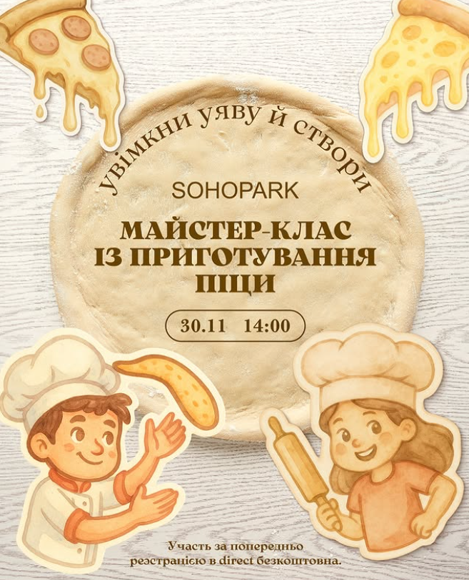 Маленькі кухарі замісять тісто, оберуть улюблені начинки і зроблять власний шедевр!