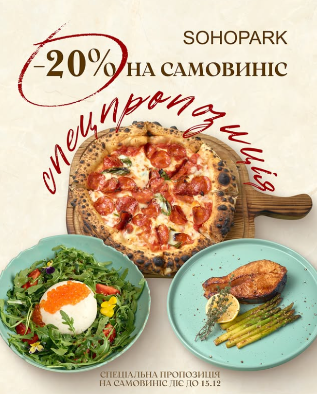 SOHOPARK у форматі самовиносу — це можливість отримати досконалий смак зі спеціальною знижкою -20%.