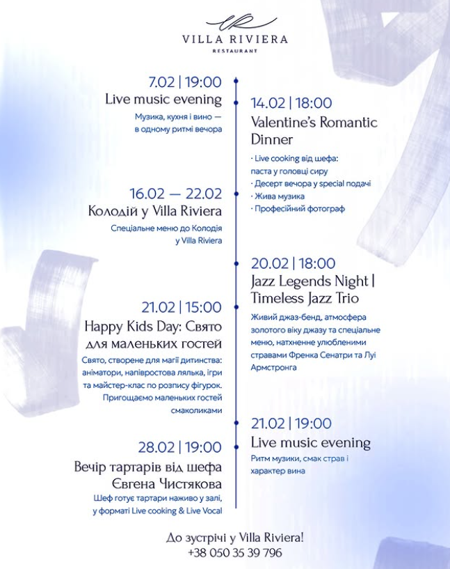 Лютий у Villa Riviera — це місяць музики, смаку та особливих подій.