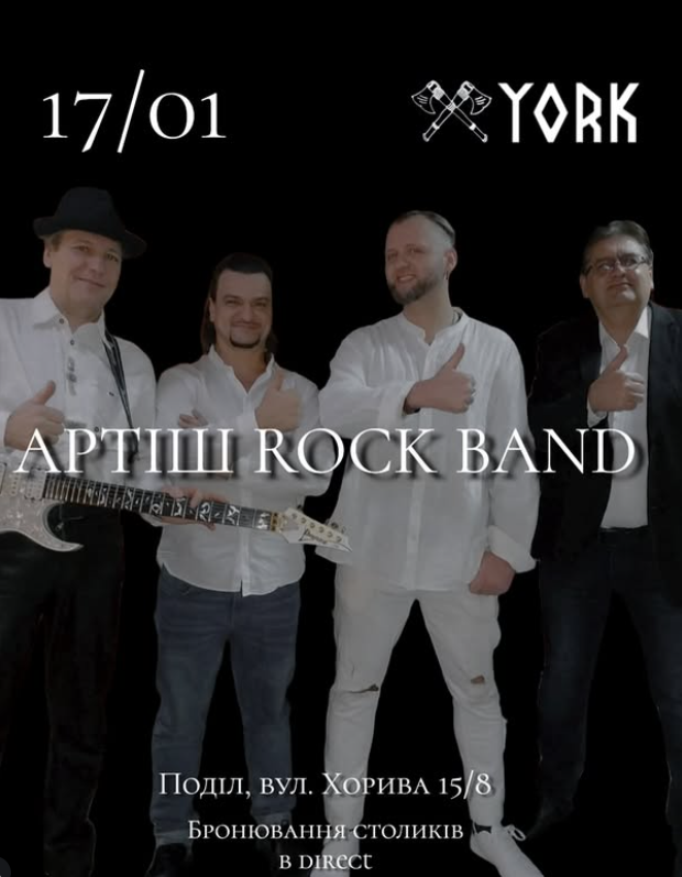 17 січня (субота) о 18:00 у York звучатиме жива музика від рок-гурту «Артіш», а за одним столом зберуться ті, хто цінує характер, традиції та справжні емоції.