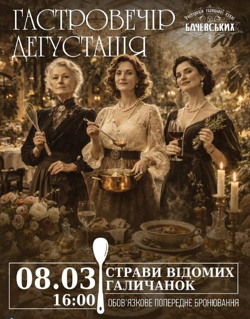 Запрошуємо на особливу подію у Ресторації «Бачевських» — вечір, де кулінарія переплітається з історіями сильних жінок Галичини.