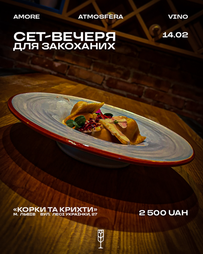 я сет-вечеря — як історія про двох. Закуски та салат — те, що поєднує, налаштовує на спільну хвилю. Основні страви — характер кожного, його індивідуальність. А вино… як іскра, що розпалює вечір та додає магії.