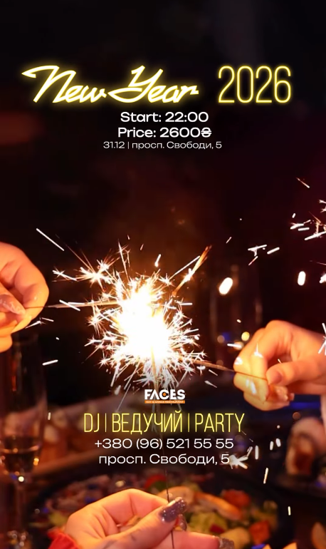 Львів / Календар подій / Ресторан Faces / Події / Твій чудовий Новий рік з друзями у FACES.