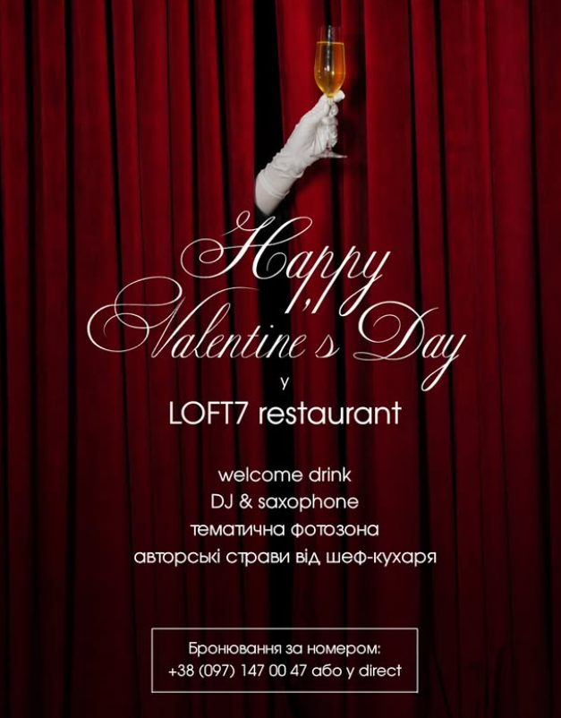 Львів / Календар подій / Ресторан LOFT7 / Події / День закоханих у LOFT7 restaurant.