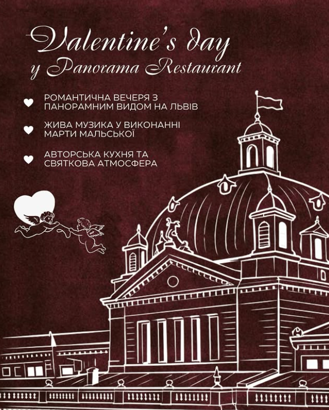 Львів / Календар подій / Ресторан Panorama (Панорама) / Події / День святого Валентина у Panorama Restaurant.